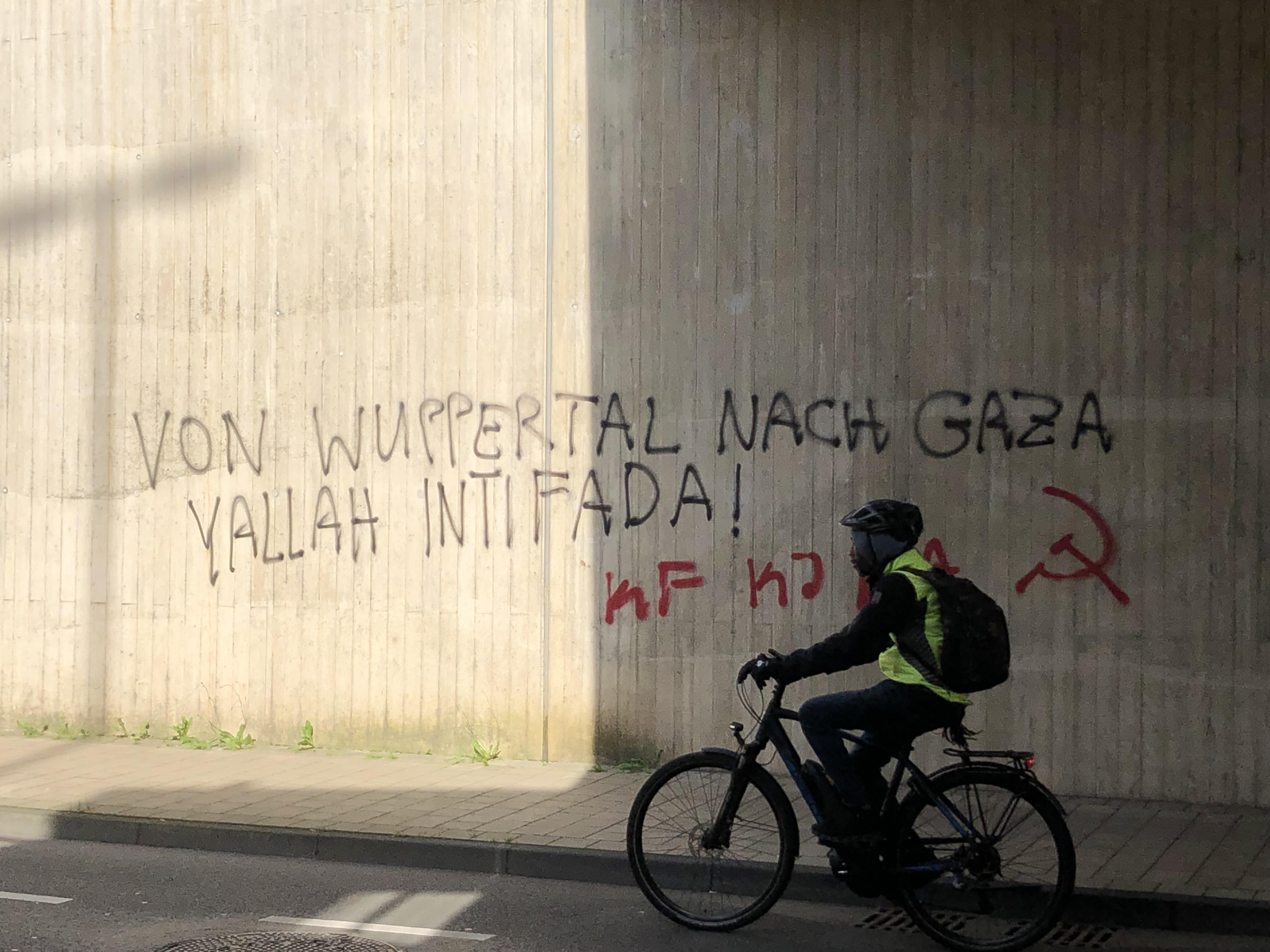 Wer aber in Deutschland und in Wuppertal „Free Palestine!“ an Hauswände schmiert, hat alles das nicht im Sinn. Dieses „Free Palestine“ ist eine ausbau- und wandlungsfähige Kampfparole, die zum Hass gegen Israel als jüdisches Kollektiv und gegen jeden einzelnen jüdischen Menschen aufruft. Diese Parole will in der Variante „From the River to the See“ Israel vernichten. Und in der Variante „Free Palestine from german Guilt“ deutet sie in dreister Täter-Opfer-Umkehr den Staat Israel als die Verwirklichung eines überzogenen und unberechtigen Wiedergutmachungsanspruchs.